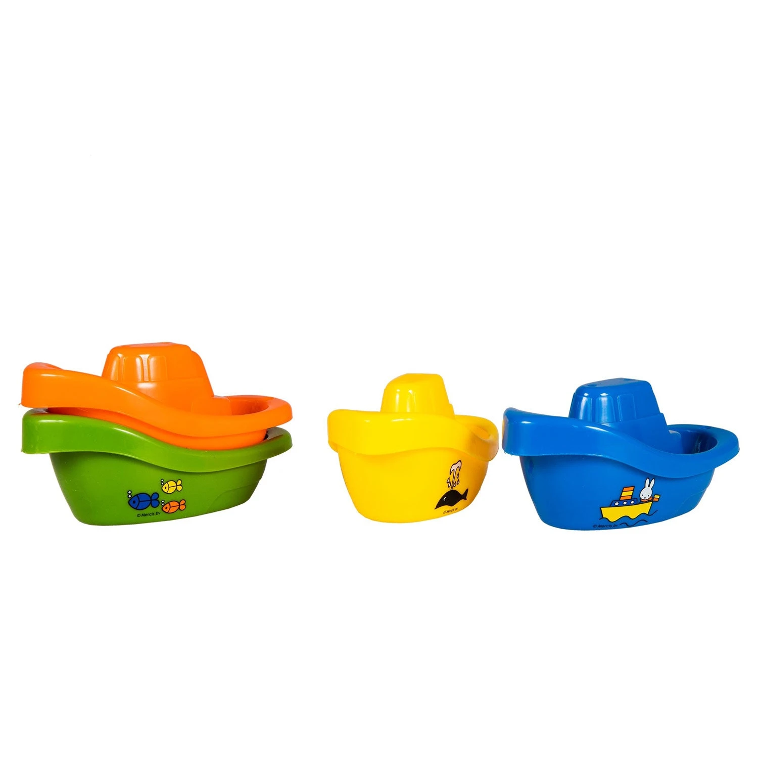 Maak van badderen het allerleukste moment van de dag met deze superleuke set bad bootjes van Nijntje. De vrolijke vloot bestaat uit 4 verschillende kleuren: blauw, groen geel en nijntje rood en zijn voorzien van kleurrijke Dick Bruna illustraties. Laat de bootjes door de badkuip drijven, vul ze met water of stapel ze allemaal op elkaar. De kleurrijke bad bootjes van Nijntje prikkelen de verbeelding van je kleintje zowel in het water als op het droge. Geschikt voor kinderen vanaf 4 maanden.