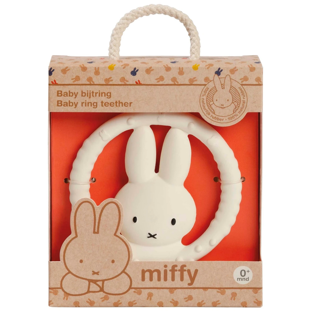 Deze mooie bijtring van nijntje met verschillende structuren kan je kindje helpen de pijn te verzachten tijdens het doorkomen van tandjes. Deze 100% natuurlijk rubberen bijtring kalmeert het tandvlees en helpt tegelijk met de ontwikkeling van de zintuigen. Deze nijntje bijtring is speciaal ontwikkeld voor de allerkleinsten. Het formaat van deze bijtring is gemaakt voor kleine handjes waardoor deze gemakkelijk vast te pakken is, en het materiaal is vrij van PVC, BPA, Nitrosaminen en Phthlaten. Voor baby¿s een veilige keuze. De nijntje bijtring kan worden schoongemaakt met een licht vochtig doekje met wat zachte zeep. Wij adviseren deze bijtring niet in bad te gebruiken of onder de kraan te houden. De bijtring wordt geleverd in een mooie geschenkdoos waardoor hij ook erg leuk is om cadeau te geven.
