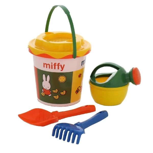 Deze emmer is voorzien van alle spulletjes die uw kindje nodig heeft aan het strand: een zeef, gieter, schep en hark. Hoogte: 16 cm. Geschikt voor kinderen vanaf 1 jaar.