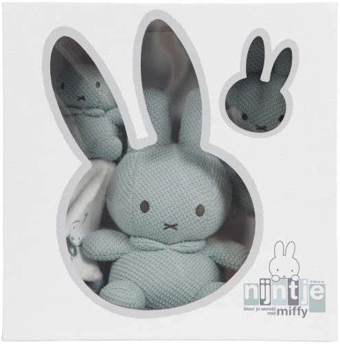 Nijntje geschenkenset met knuffel, knuffeldoekje en knuffel-rammelaar. Kleur: groen.