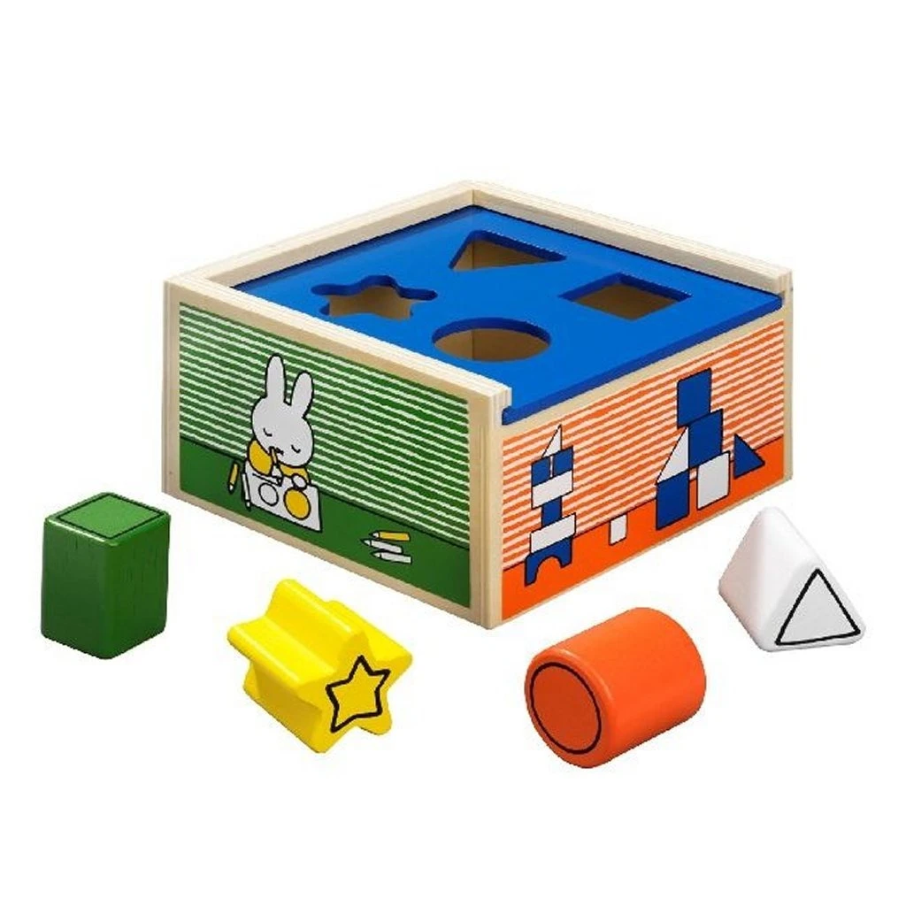Met deze fraaie houten Nijntje vormenstoof beschikt je kindje over een traditioneel en educatief stuk speelgoed. De vormenstoof is van hout met rondom een vrolijk, fris printje in de klassieke kleurstelling. Door de verschillende vormen door de juiste openingen in het deksel te duwen, traint het kindje de motoriek en leert het vormen herkennen.