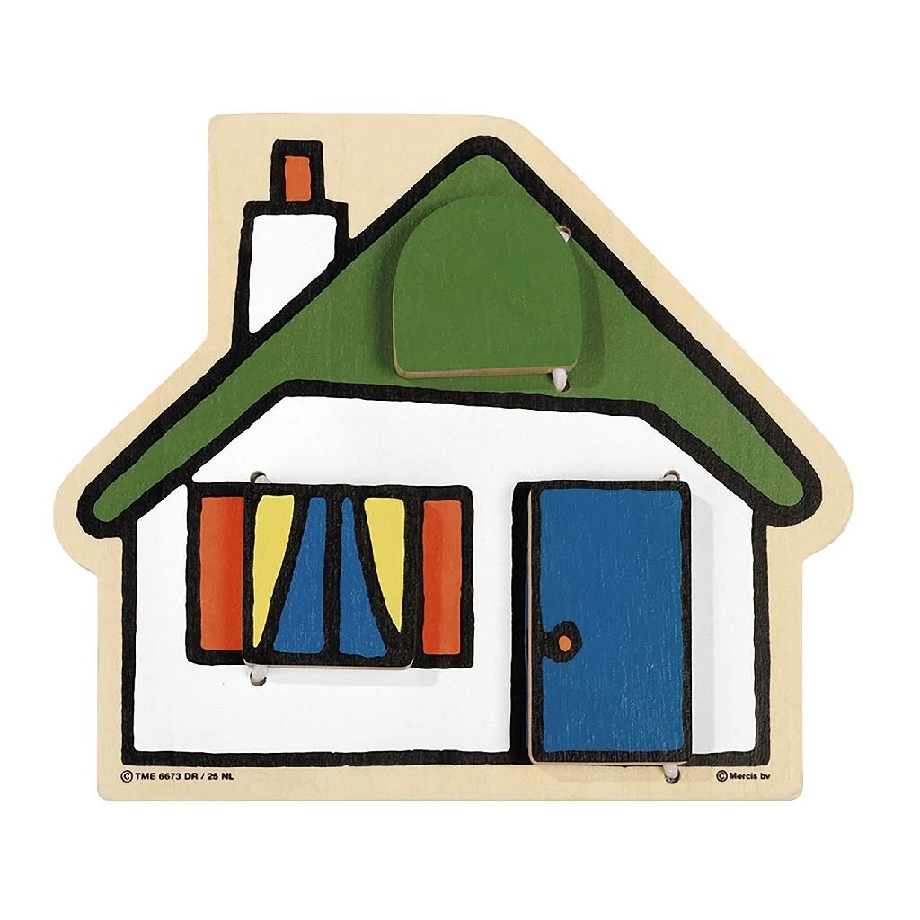 Nijntje ben je thuis. Houten huisje met bewegende delen zoals ramen en deur.