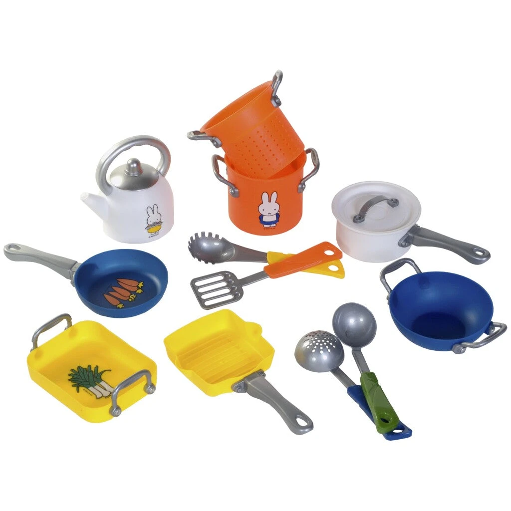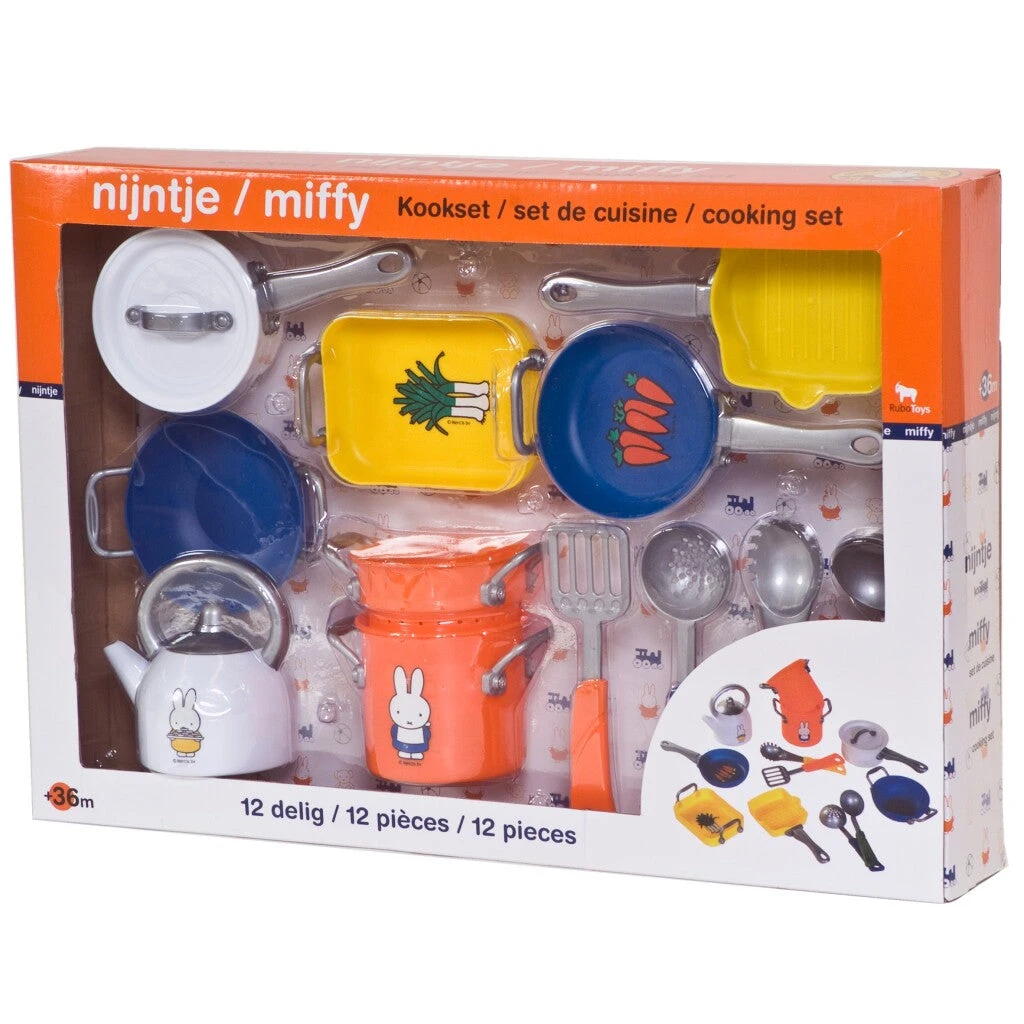 Nijntje kooksetje bestaande uit 12 delen. In vrolijke primaire kleuren en voorzien van leuke nijntje printjes. Geschikt voor kinderen vanaf 36 maanden.