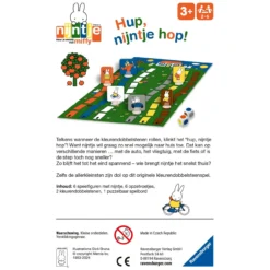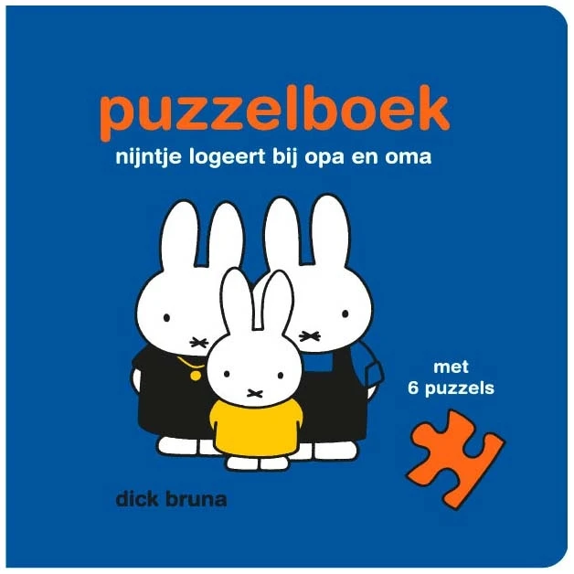 Nijntje gaat bij opa en oma logeren. En beertje mag ook mee! Dit stevige kartonboek bevat 6 puzzels oplopend in moeilijkheidsgraad: 2 puzzels van 4 stukken, 2 puzzels van 6 stukken en 2 puzzels van 9 stukken. De puzzels vormen samen het verhaaltje ‘nijntje logeert bij opa en oma’.
