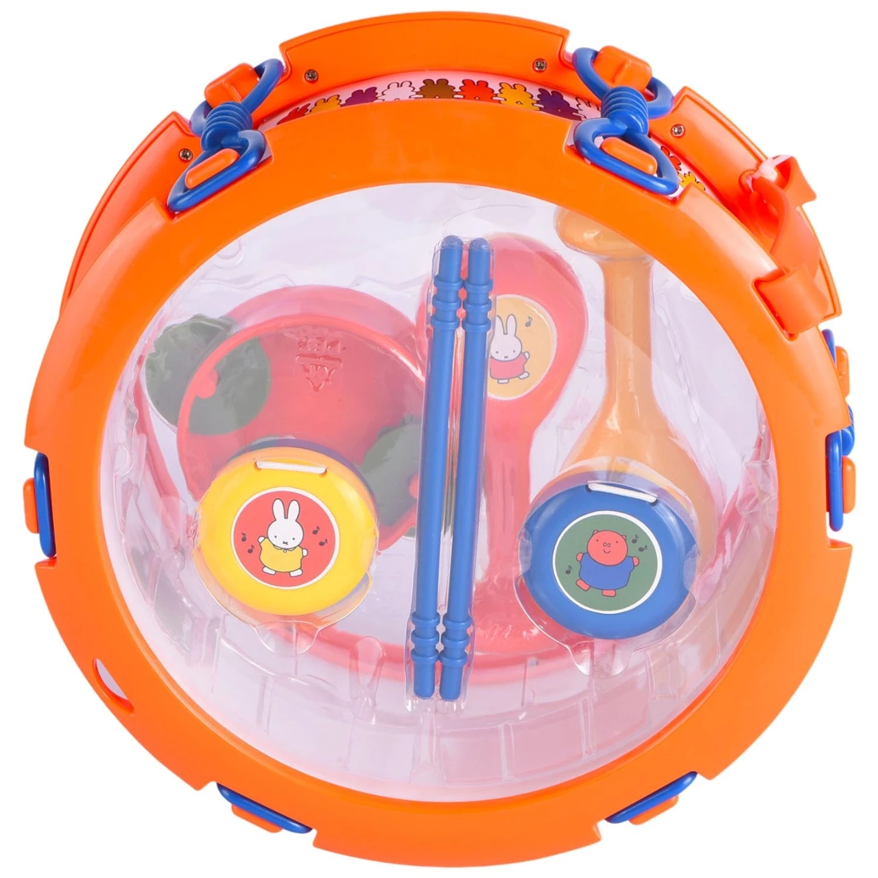 Het is feest, en muziek is leuk! Met de vrolijke nijntje muziekinstrumenten kunnen kinderen muziek maken. Er is een trommel met stokjes, een tamboerijn, twee klappertjes en twee sambaballetjes. Na het spelen kun je alles in de trommel bewaren. Het is geschikt voor kinderen vanaf 3 jaar. De muziekset zit verpakt in een touch box. Veel speelplezier!