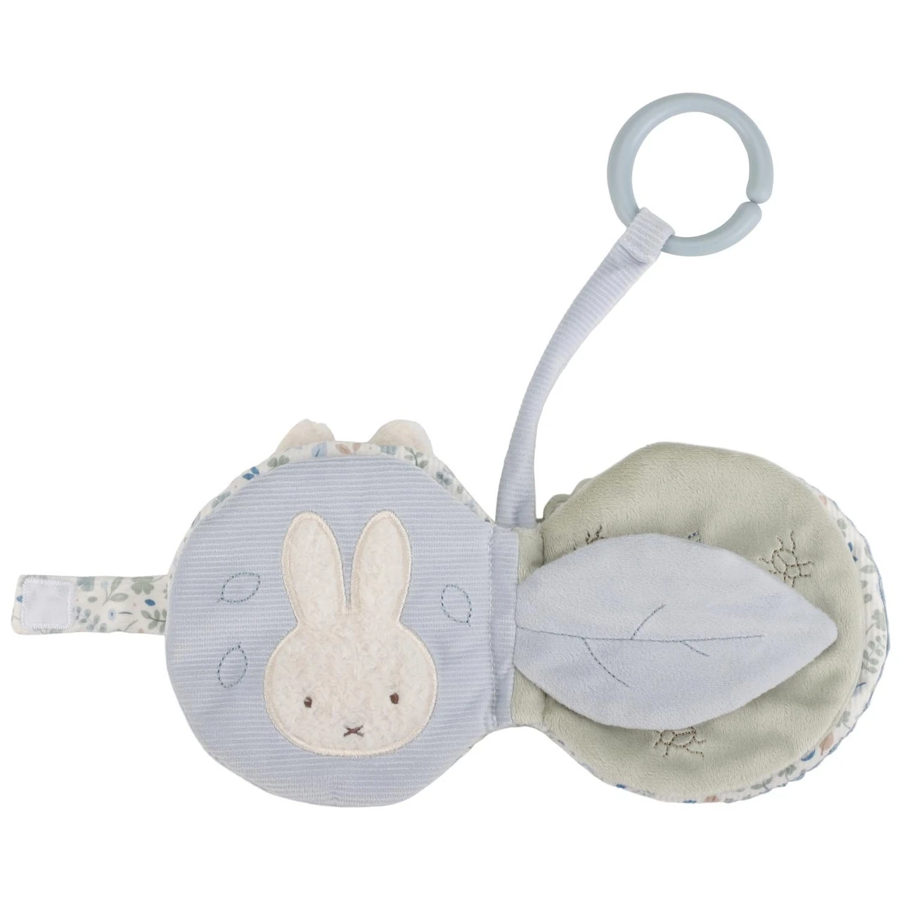 Nijntje vermaak onderweg! Dit touch & play buggyboekje in mooi Little Dutch thema wordt ongetwijfeld een favoriet van je kleintje. Voorzien van leuke labels, kreukeltexturen en geluidjes, zal dit boekje de zintuigen van kinderen stimuleren. Het heeft ook een spiegeltje voor zelfontdekking en een zacht nijntje op de voorkant. Bevestig de speelgoedring aan de kinderwagen voor entertainment onderweg. het Buggy/activiteitenboekje is verkrijgbaar in de Little Dutch thema’s Lucky Leaves en Lucky Blossom.
