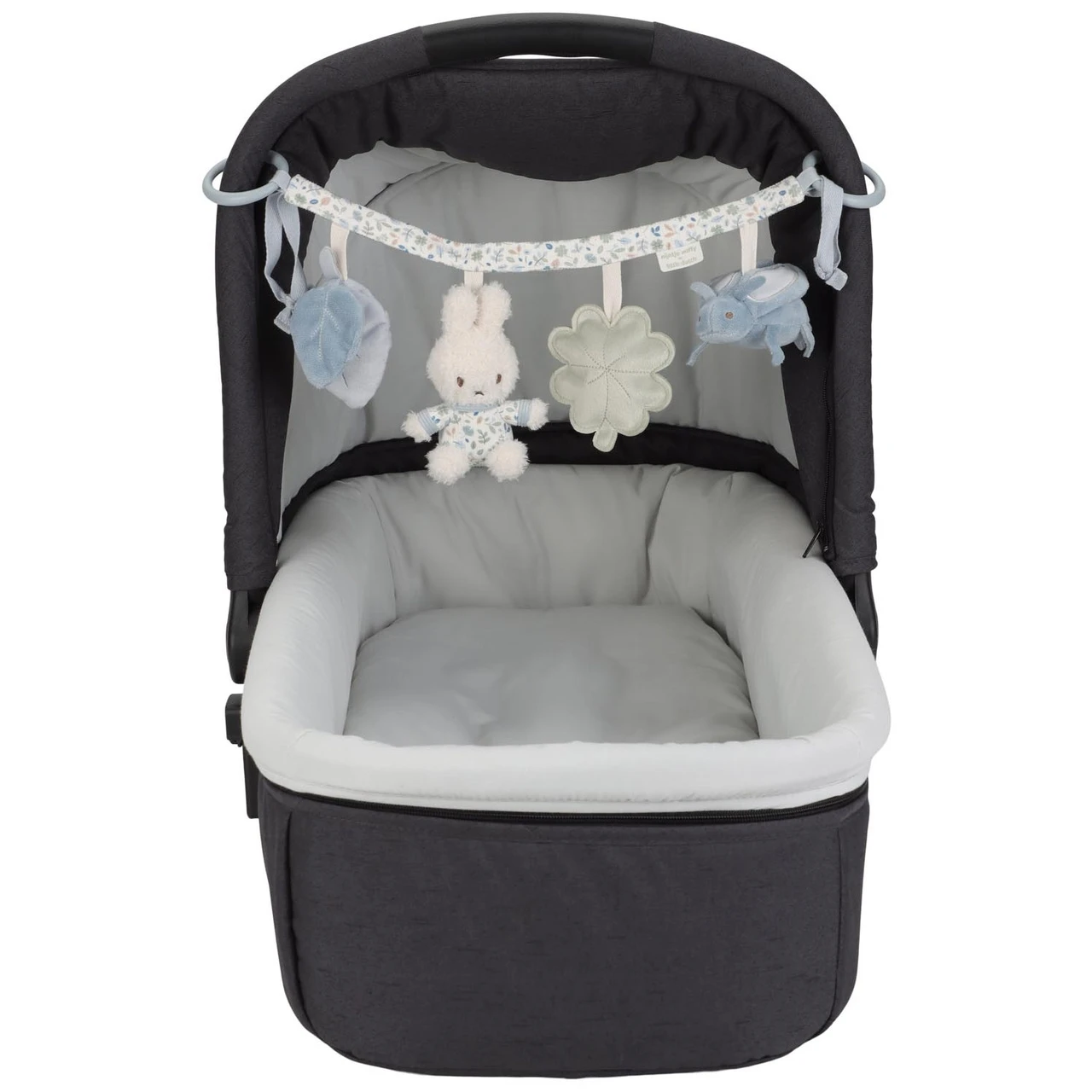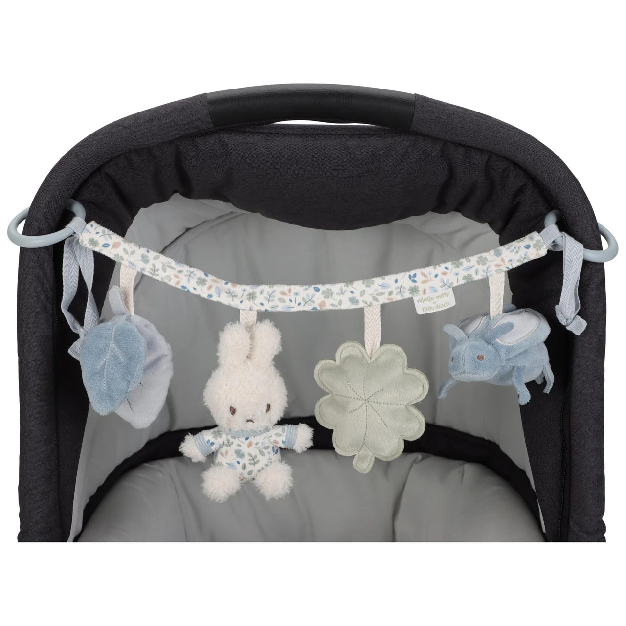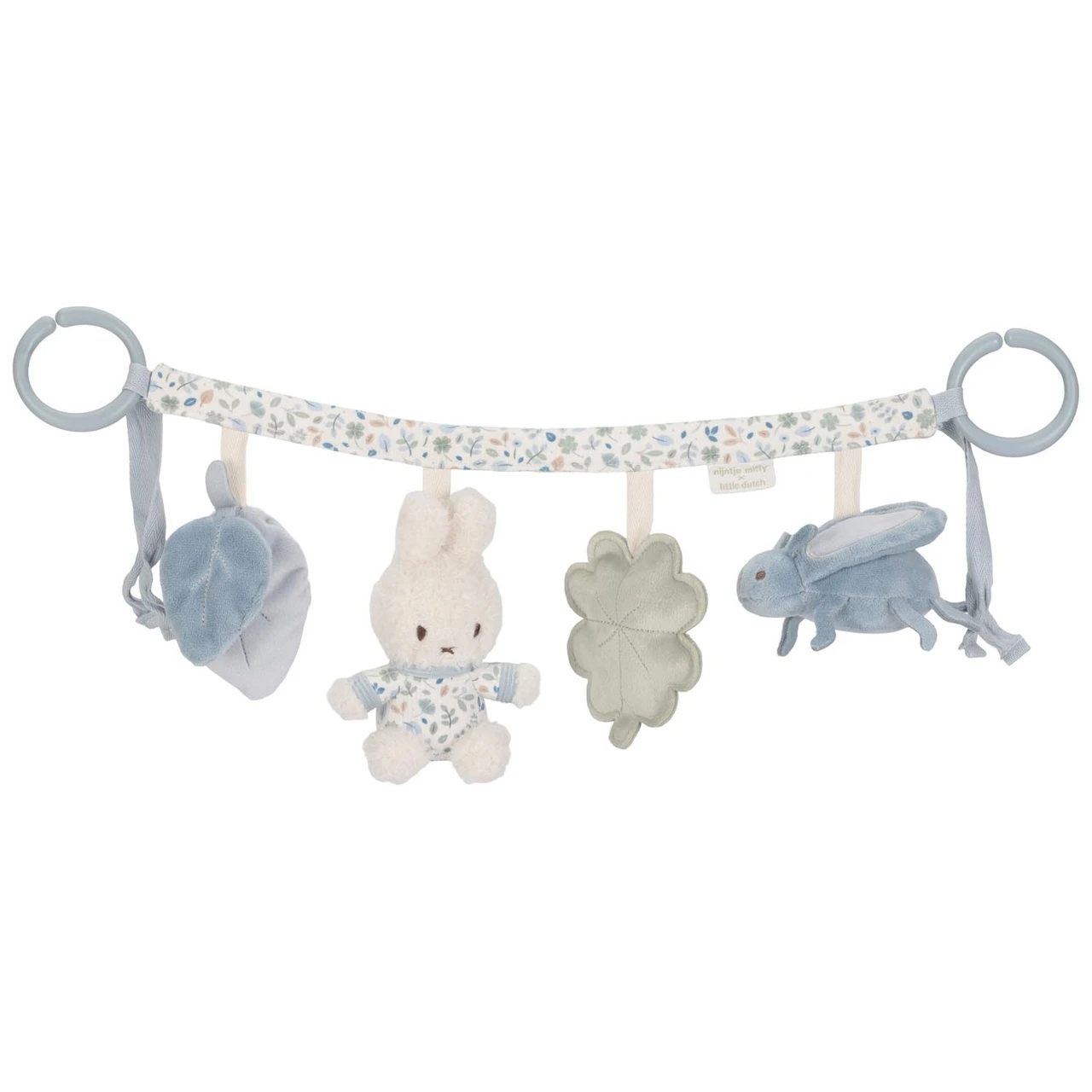 Probeer nijntje maar te pakken! Deze wagenspanner is niet alleen mooi om naar te kijken als je onderweg bent, hij nodigt ook uit om te spelen. nijntje en de verschillende onderdelen hebben elk een functie om te ontdekken. Vind het ratelende geluid, het piepen en knisperen! Bevestig de wagenspanner gemakkelijk aan de kinderwagen en je kleintje zal zich vermaken als jullie onderweg zijn. Ook goed voor de hand-oogcoördinatie! De wagenspanner is verkrijgbaar in de Little Dutch thema’s Lucky Leaves en Lucky Blossom.